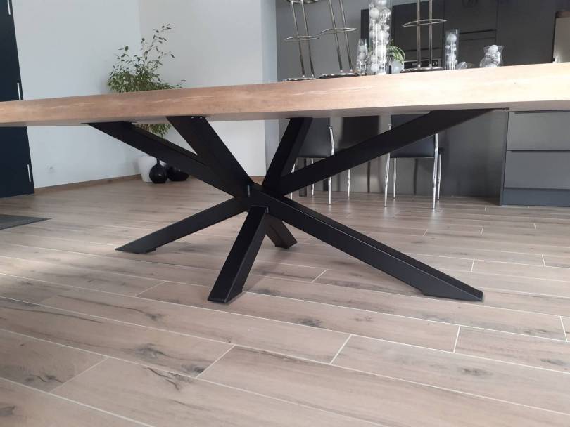 Fabriquées par nos soins au Loroux-Bottereau, ces tables incarnent la convivialité et l’esthétique industrielle. La robustesse de la structure métallique se marie à la chaleur d’un plateau en bois massif (chêne, frêne, etc.), sélectionné avec soin pour sa beauté et sa longévité.